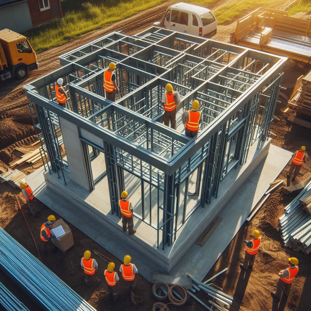 En la obra nos espera la losa de hormigón que servirá de base sólida a toda la construcción, sea de una o más plantas. En un plazo de tiempo no mayor a los dos meses se armará y ensamblará toda la estructura dividida en tramos, incluyendo cerramientos perimetrales, cubierta y divisiones o tabiques interiores.